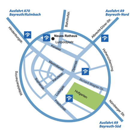 Die Praxis liegt im Zentrum Bayreuths, direkt gegenüber vom Rathaus,